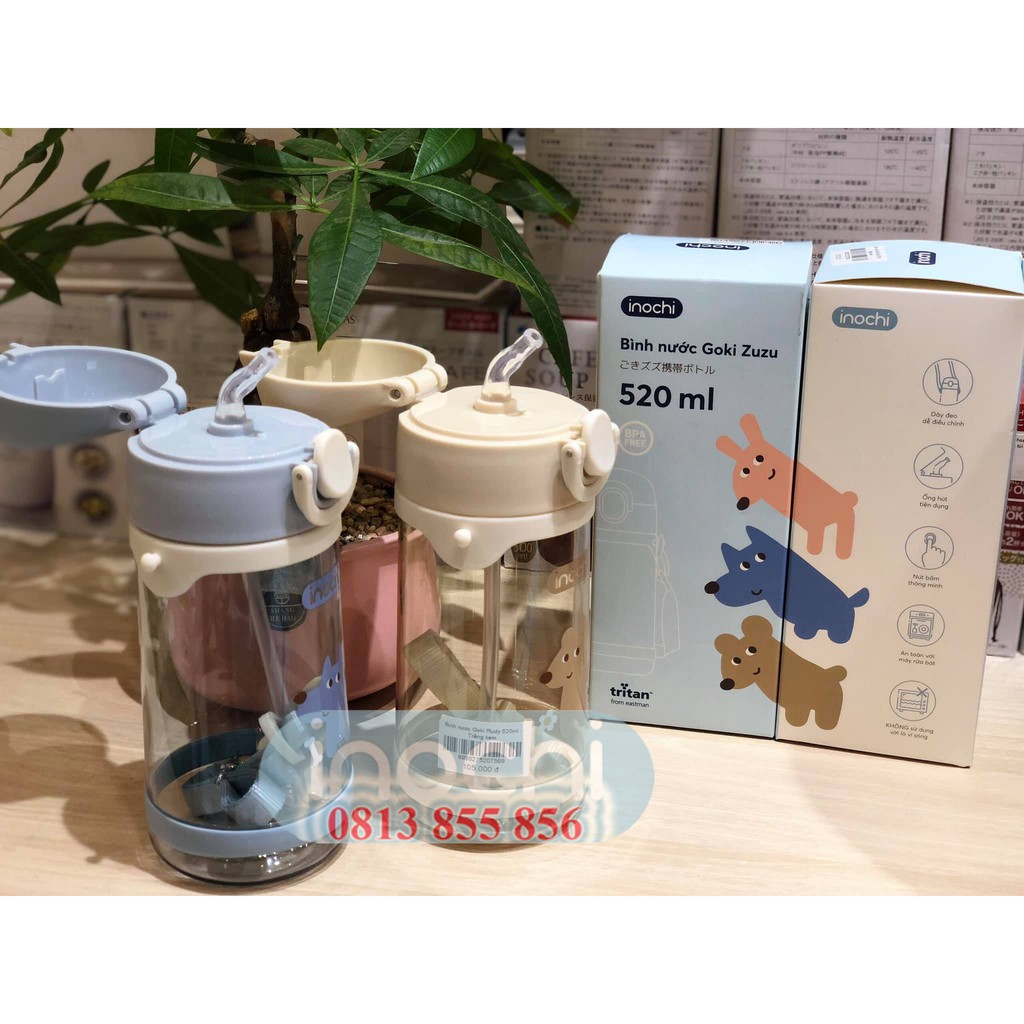 Bình nước trẻ em Inochi chịu nhiệt Goki Zuzu 520ml có dây đeo