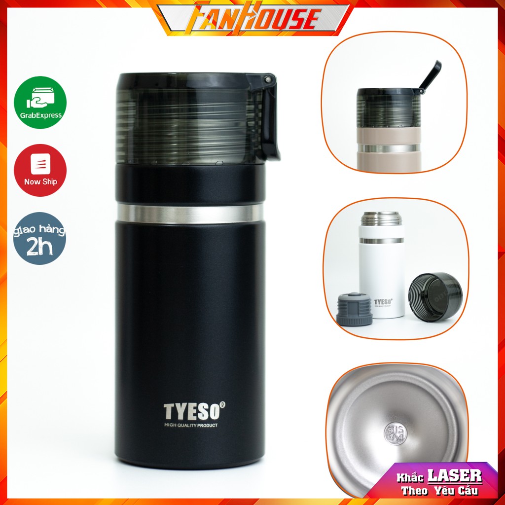 Giới thiệu Bình nước Tyeso Cupdy chính hãng, nắp tách cốc inox 304 giữ nhiệt 16h Fan House tặng que rửa bình khắc tên theo yêu cầu