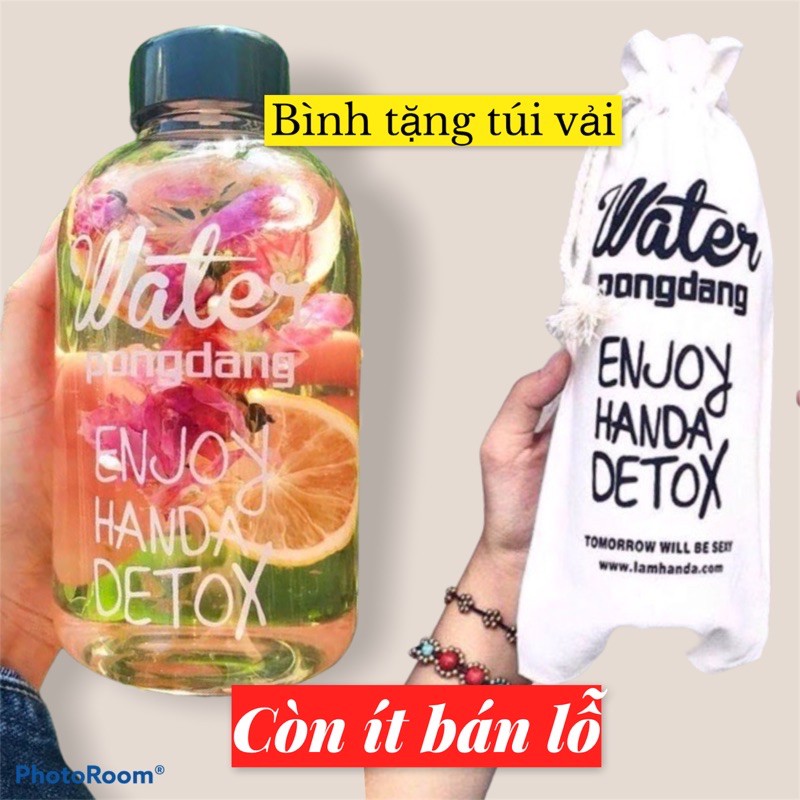 bình nước water pongdang 600ml kèm túi vải