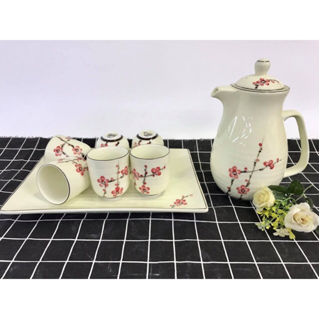 Bộ bình nước xuất Nhật gốm Bát Tràng (bình 1lít)