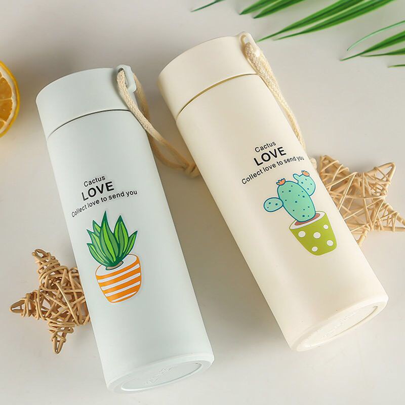 Bình nước xương rồng - Bình đựng nước thuỷ tinh giữ nhiệt dung tích 400ml - DaiSy Decor