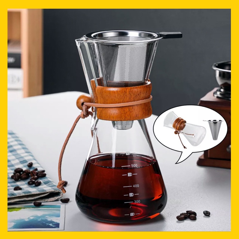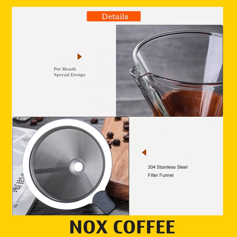 Bình kèm thêm phễu lọc Inox tái sử dụng nhiều lần giúp tiết kiệm chi phí cho việc dùng giấy lọc độc quyền của Chemex.