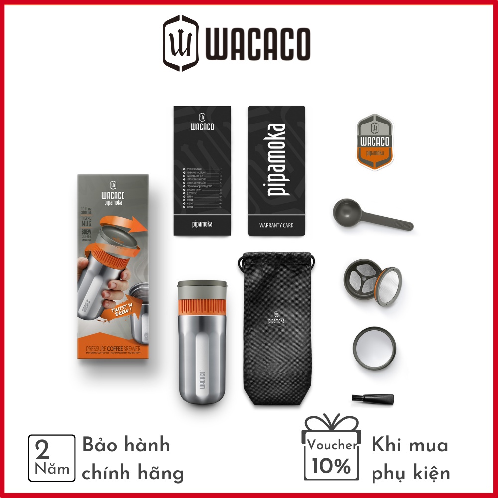 Đã rất thành công với các dụng cụ pha cà phê bằng tay như Nanopresso, Minipresso thì mới đây nhà sản xuất Wacaco đến từ Hongkong tiếp tục tung ra dụng cụ pha cà phê không bóp mà vặn mang tên Pipamoka. Khay của nó đồng thời cũng là ly giữ nhiệt chống "đổ mồi hôi" khi bỏ đá, giúp kéo dài thời gian thưởng thức. Đây có thể xem là món đồ chơi cho tín đồ EDC nghiện cafe kể khi sử dụng trong nhà, ra phố, đi du lịch cắm trại hay ở công sở.Thiết kế được cấp bằng sáng chế của nó, kết hợp với cơ chế xoắn, tạo ra áp suất chân không bên trong cốc. Áp suất âm này tạo ra một lực hút hút nước nóng đi xuống qua bã cà phê. Sau đó, cà phê được pha trực tiếp vào cốc nhiệt cách nhiệt, nó sẽ nóng trong nhiều giờ. Phương pháp pha cà phê mới của Pipamoka tạo ra một tách cà phê thơm ngon, sạch và đầy đủ hương vị trong khoảng hai phút.