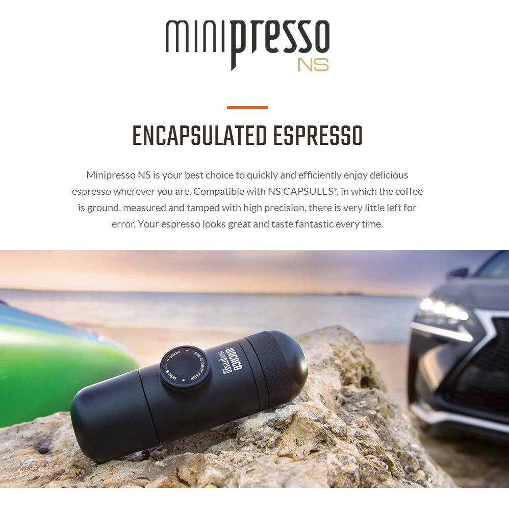 Thưởng thức cà phê Espresso ở bất cứ đâu với máy pha cà phê Wacaco Minipresso NS tương thích với viên nang Nespresso. Một chiếc máy pha Espresso cầm tay nhẹ, nhỏ gọn và cực kỳ tiện lợi khi sử dụng, bỏ qua những thao tác bất tiện để có một shot Espresso ngon, kể cả ở nhà hoặc khi đang di chuyển.