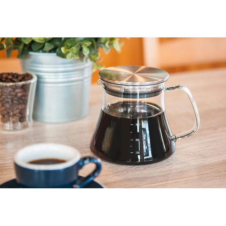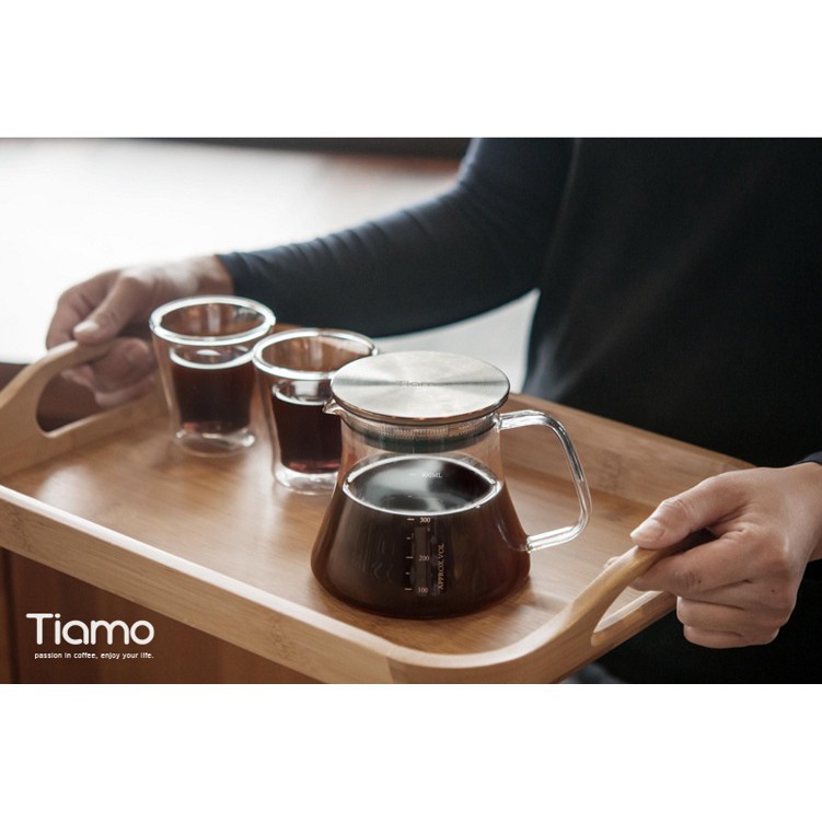 Giới thiệu Bình pha cà phê thủy tinh chịu nhiệt Tiamo 400ml nắp inox