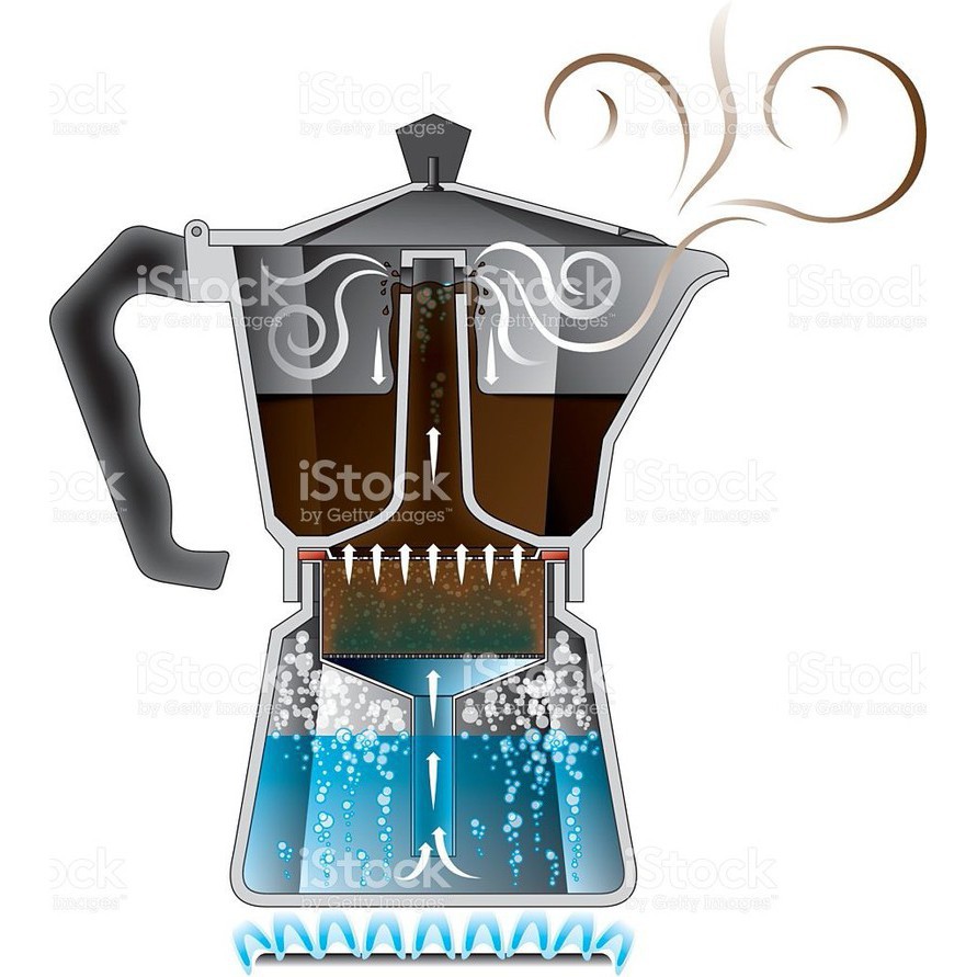 Ấm Moka pha cà phê thẩm thấu ngược bằng áp suất tạo ra khi nước khi đun sôi. Vì thế cà phê sẽ có lớp crema mỏng phía trên gần tương tự như pha espresso bằng máy chuyên nghiệp hàng chục triệu. Được ra mắt từ năm 1919 tại Ý, trải qua gần 100 năm phát triển nhưng ấm pha cà phê Moka Express cổ điển vẫn là mẫu được yêu thích nhất với hơn 200 triệu ấm được bán ra trên toàn thế giới. Thủ tướng Ý đã tặng CEO Apple 1 ấm Moka làm quà như một biểu tượng văn hóa cà phê Ý.- Hàng nhập khẩu công nghệ Ý