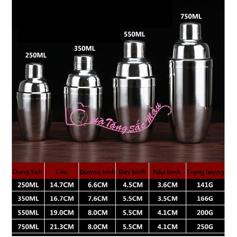 Dung tích: 750mlBình lắc pha chế Cocktail Shaker Inox cao cấp