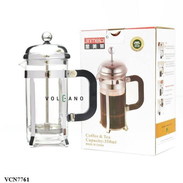 Bình French press thuỷ tinh chịu nhiệt với khung inox chắc chắn , dung tích 350mlDùng được cho 2-4 người