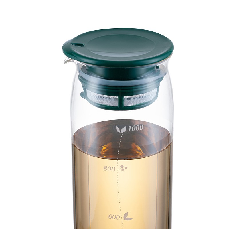 Nắp có vòng roăng đậy chặt, có lưới lọc tiện dụng, thích hợp để pha trà ủ lạnh.