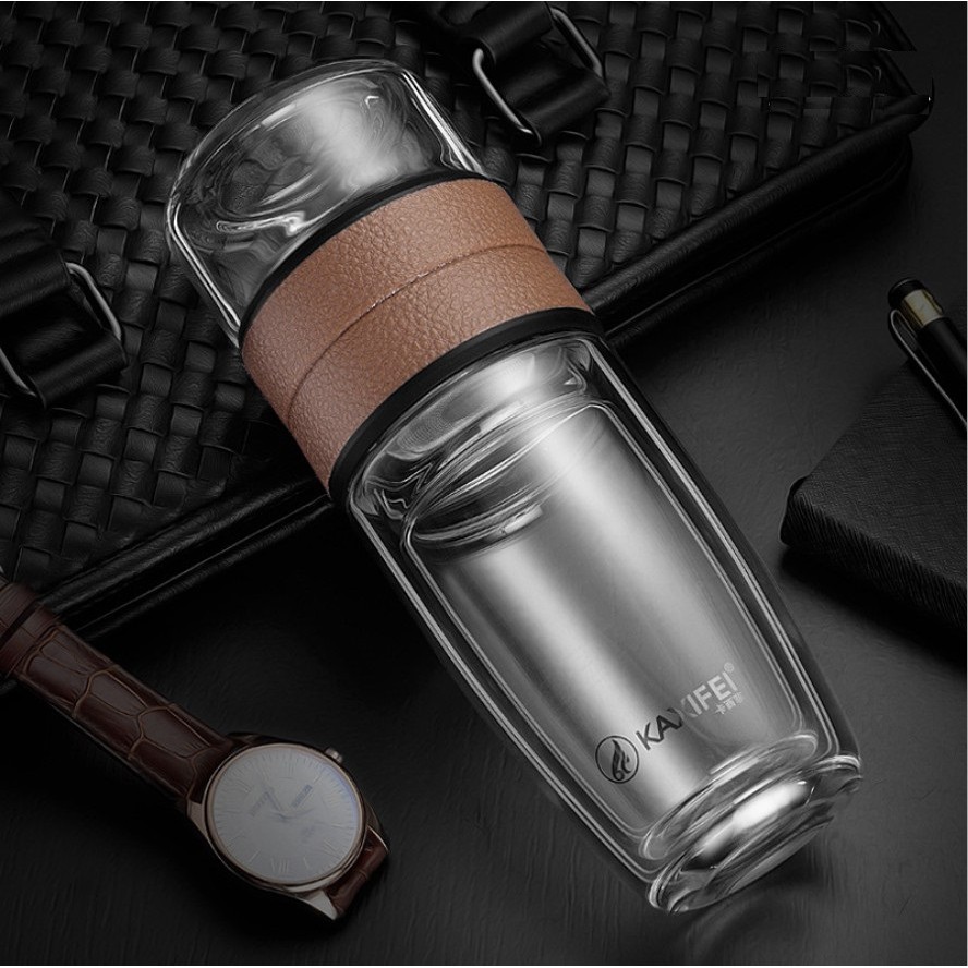 Bình pha trà, ly pha trà thủy tinh có lỗi lọc inox 304 cao cấp-Nâu