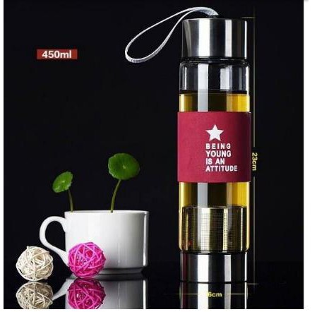 Bình pha trà mini 450ml tiện dụng chất liệu thủy tinh dầy dặn