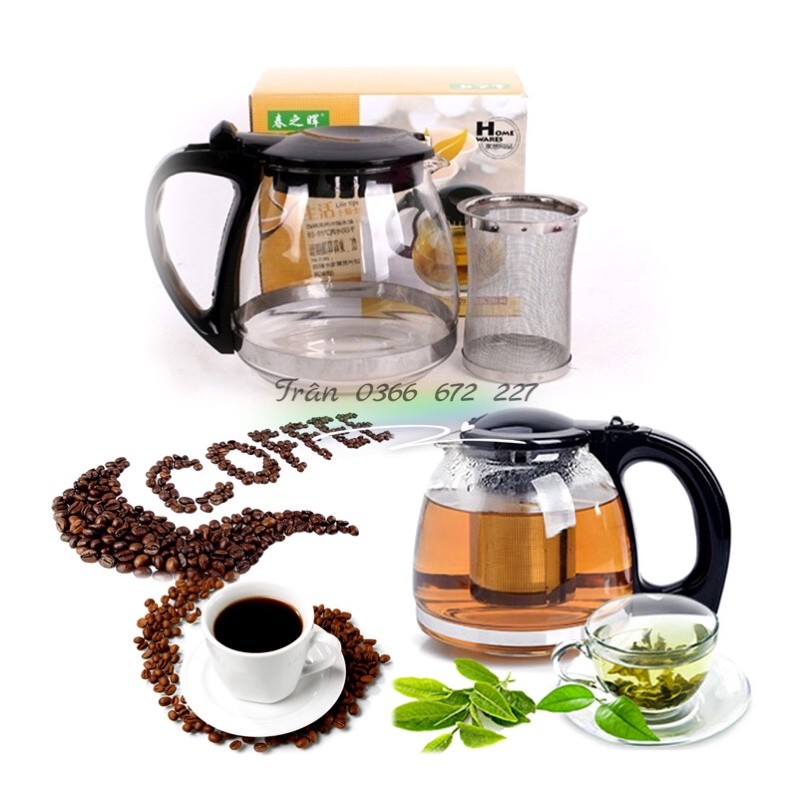 Bình pha trà thuỷ tinh 1.3L có lưới lọc:Chất liệu: ấm thủy tinh, tay cầm nhựa, lưới lọc inox