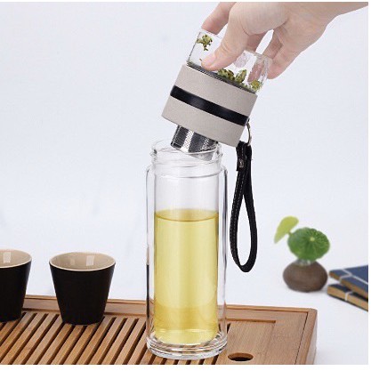 Bình Pha Trà Thuỷ Tinh 2 Lớp Kèm Lõi Lọc, Dung Tích 400ML (GIAO NGAY TRONG NGÀY SHIPNOW HOẶC GRABSHIP)