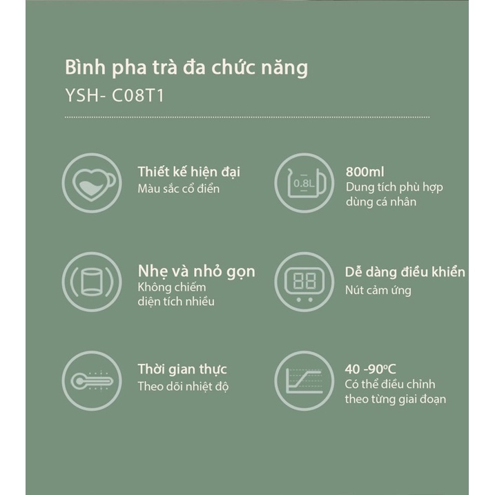 Bình pha trà thuỷ tinh đa năng Bear YSH-C08T1 cảm ứng nhiệt, đun sôi nhanh - Hàng chính hãng bảo hành 18 tháng1. THÔNG TIN SẢN PHẨM
