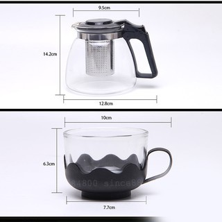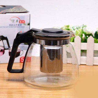 » Ấm pha trà thủy tinh có lõi lọc trà, quai cầm nhựa cách nhiệt.