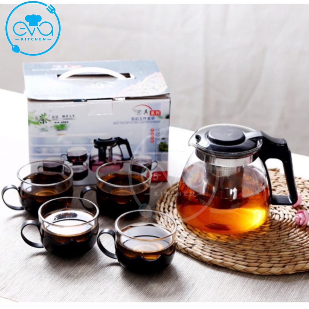 Nhà cửa & Đời sống > Dụng cụ nhà bếp > Dụng cụ pha trà, cà phê || Bộ Bình Pha Trà Thủy Tinh Lưới Lọc Inox kèm 4 Ly Tách Cao Cấp M3126Còn hàng