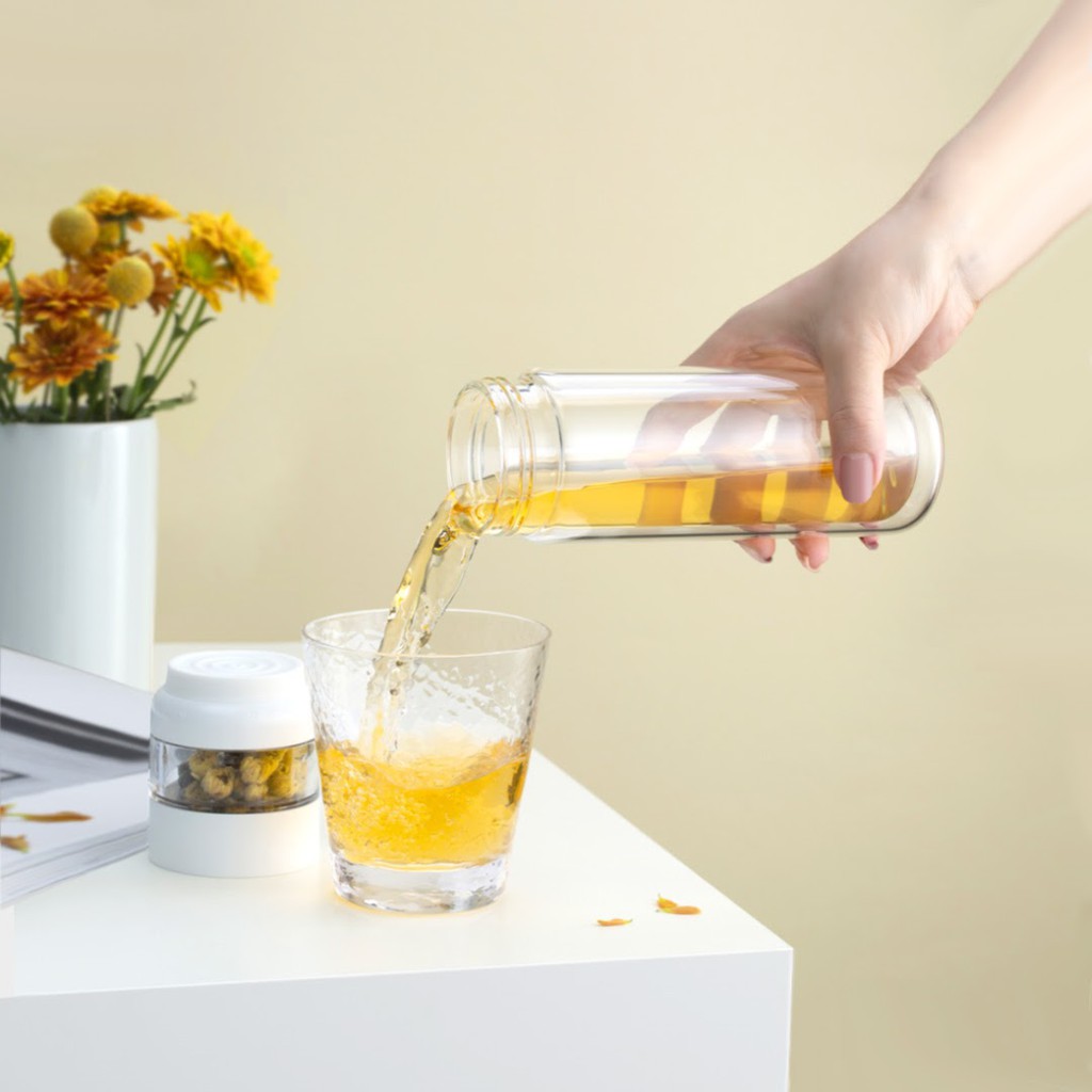 Dù có kích thước khá nhỏ nhưng bình pha trà Quance sở hữu 1 dung tích khá hợp lý. Cụ thể cốc pha trà có dung tích làm 100ml và phân thân bình trà có dung tích là 300ml, đủ đáp ứng nhu cầu uống trà ở 1 lần sử dụng. Đồng thời với thiết kế trong suốt độc đáo, giúp người dùng quan sát được lượng trà bên trong. Sản phẩm gồm 2 màu sắc là trắng và hồng phù hợp với người dùng là nam lẫn nữ.