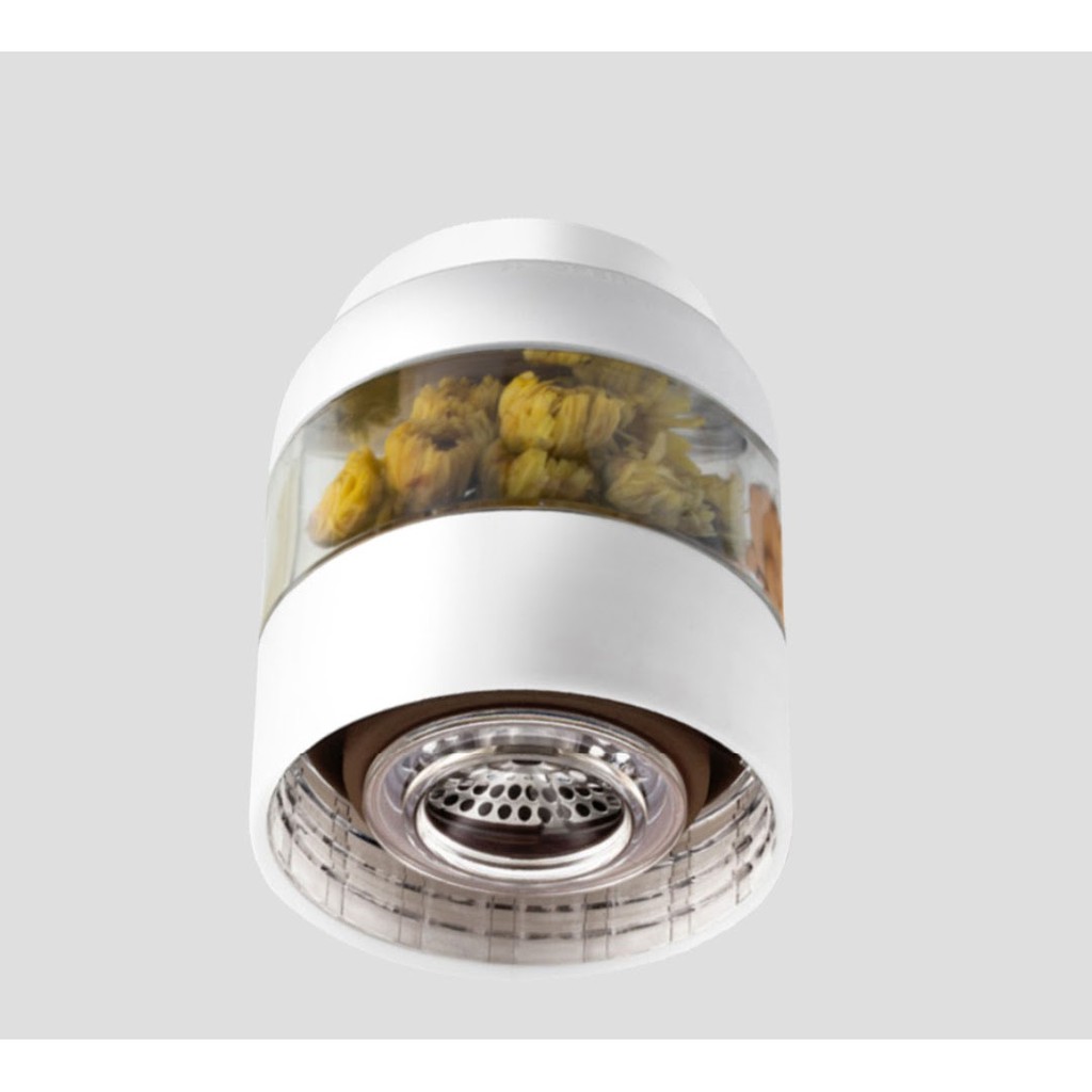 Bên cạnh đó bộ lọc trà gồm 100 lỗ và được thiết kế vô cùng tỉ mỉ để ngăn không cho trà rơi vào cốc một cách hiệu quả. Vật liệu gia công nên lưới lọc trà này là thép không gỉ 304 cao cấp. Ngoài ra nắp ngăn giữa cốc đựng trà và bình trà là một nắp nhựa PP có miệng đệm silicone, có hiệu suất tốt, tránh rò rỉ trà.