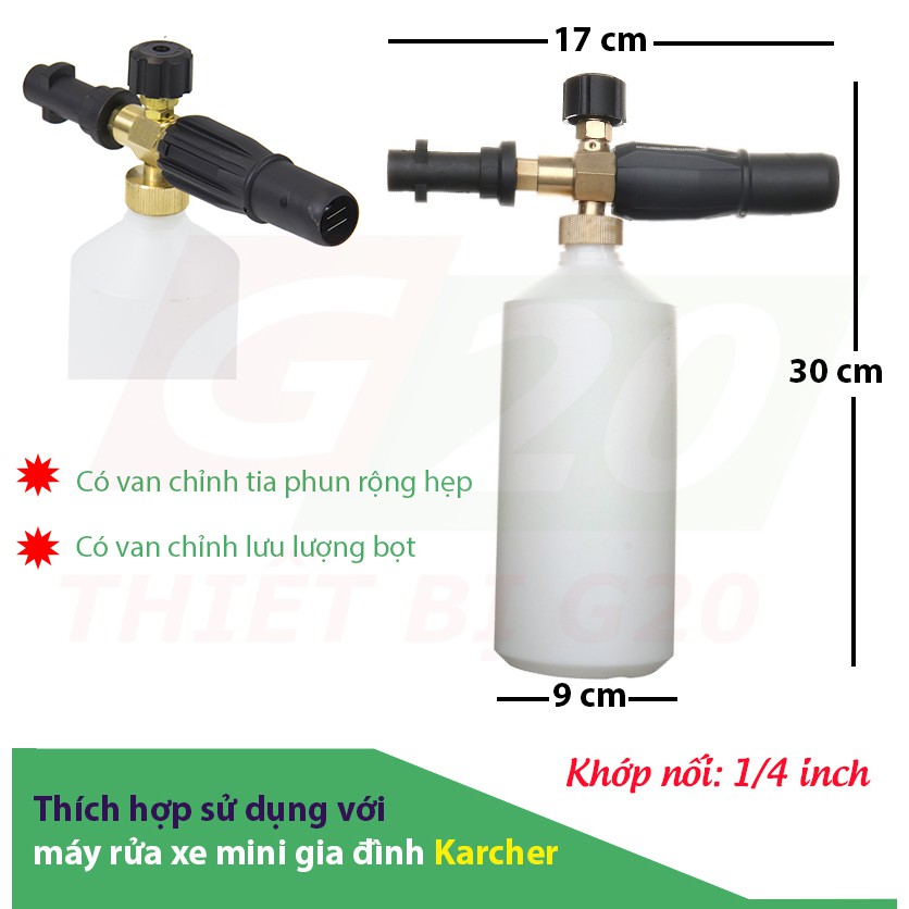 Bình phun bọt tuyết 1 lít lắp đầu súng rửa xe Karcher gia đình