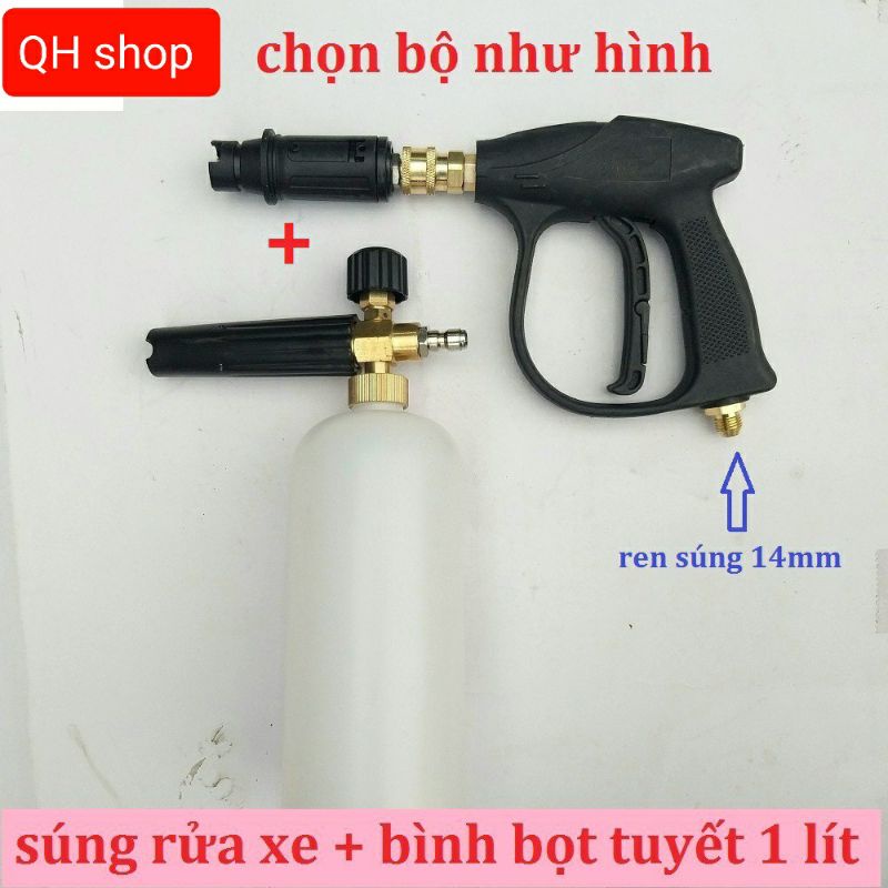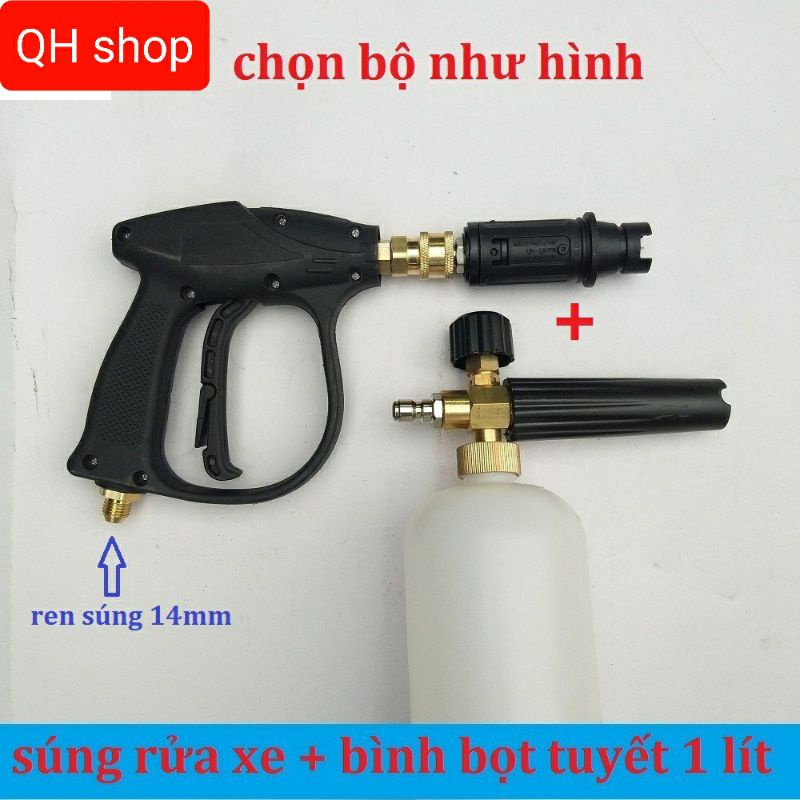 Bình Phun Bọt Tuyết + Súng Xịt Rửa Xe Cho Máy Rửa Xe ( Súng ren 14mm + bình bọt 1 lít)