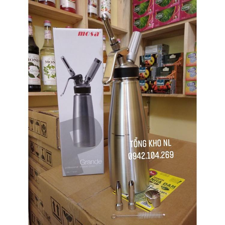 Bình Phun Kem Tươi Mosa Inox 1L/ Bình Phun Kem Tươi Mosa Inox 500ml - TẶNG KÈM CÔNG THỨC LÀM KEM TƯƠI