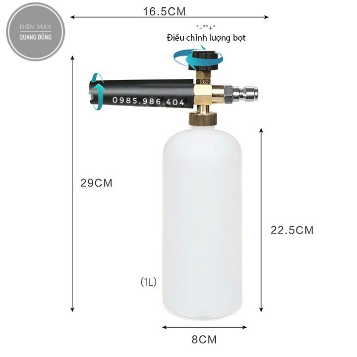 Khi rửa xe bạn mất rất nhiều thời gian cho việc đổ xà phòng lên xe rồi lau chùi hoặc bình xà phòng phun bọt tuyết đi kèm theo máy rửa xe tạo bọt chưa nhiều khiến bạn không hài lòng hay đơn giản là mỗi lần rửa xe bạn muốn phun bọt tuyết phủ trắng toàn bộ xe trông thật đẹp mắt & chuyên nghiệp. Bình tạo bọt tuyết 1 lít sẽ là lựa chọn lý tưởng cho bạn.*Đặc điểm: