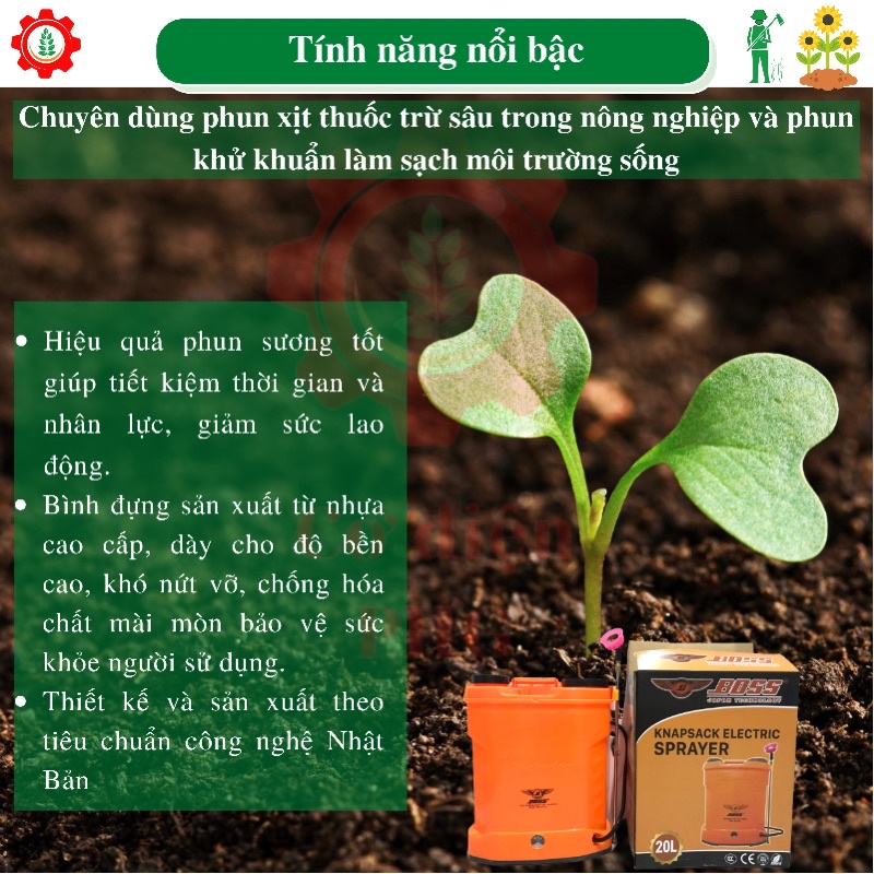 Nhà cửa & Đời sống > Làm vườn > Dụng cụ làm vườn || Bình phun thuốc trừ sâu bằng điện BOSS 20L 12V 8AH | 1 bơm | Công nghệ Nhật Bản | Bình xịt điệnCòn hàng
