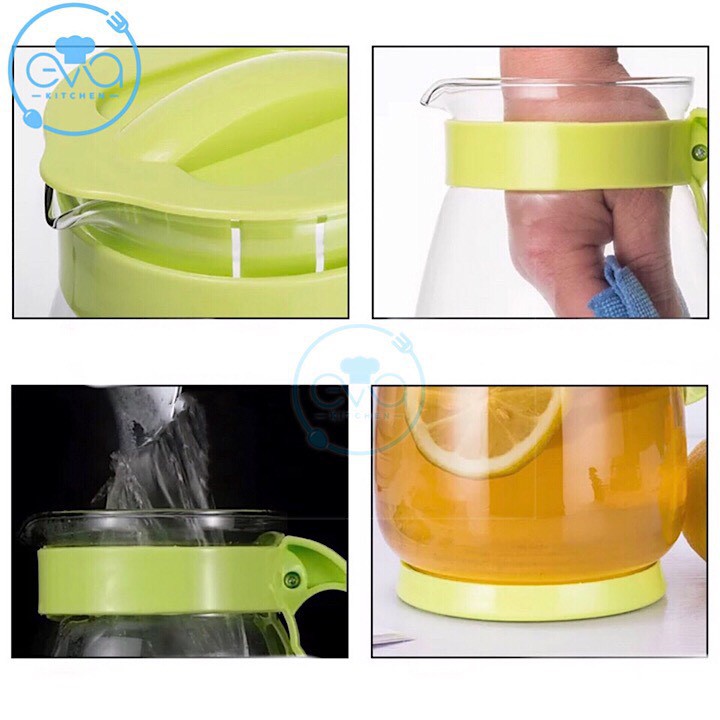 - Được làm từ chất liệu thủy tinh cao cấp, bình đựng nước vừa đảm bảo an toàn cho sức khỏe cho gia đình bạn, lại vừa đẹp mắt. Bạn có thể thoải mái để các loại nước hoa quả, nước ấm vào bình để uống và dễ dàng rửa sạch mà không lo bình bị bám màu khi để các loại nước quả như nước cam, nước dưa hấu...