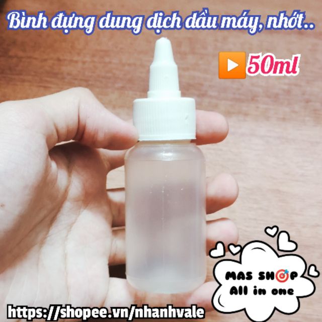 Bình rỗng đựng chứa (chế) dung dịch dầu máy, nhớt 50ml
