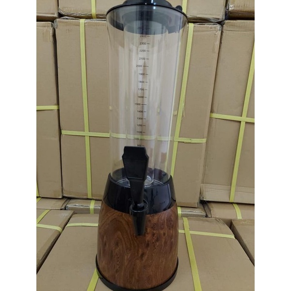 Bình rót bia 2.5 lít Vân Gỗ HC Có vòi Tháp Đựng Trà Sữa Lõi Đá giữ lạnh Đèn Led decor quán cafe trà sữa, beer, bar club