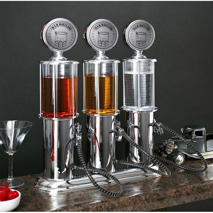 - Bình rót độc đáo này có thiết kế giống như một cây bơm xăng tự động. Bạn có thể sử dụng bình rót rượu cây xăng 1 vòi này để chứa rượu, bia, các loại cocktail mạnh hoặc nước hoa quả nguyên chất để uống. Như một đồ vật trang trí thật đẹp trong phòng khách, chiếc bình rót đặc biệt sẽ khiến khách khứa và bạn bè của bạn thật ngạc nhiên về bữa tiệc nhẹ tất niên hay liên hoan.