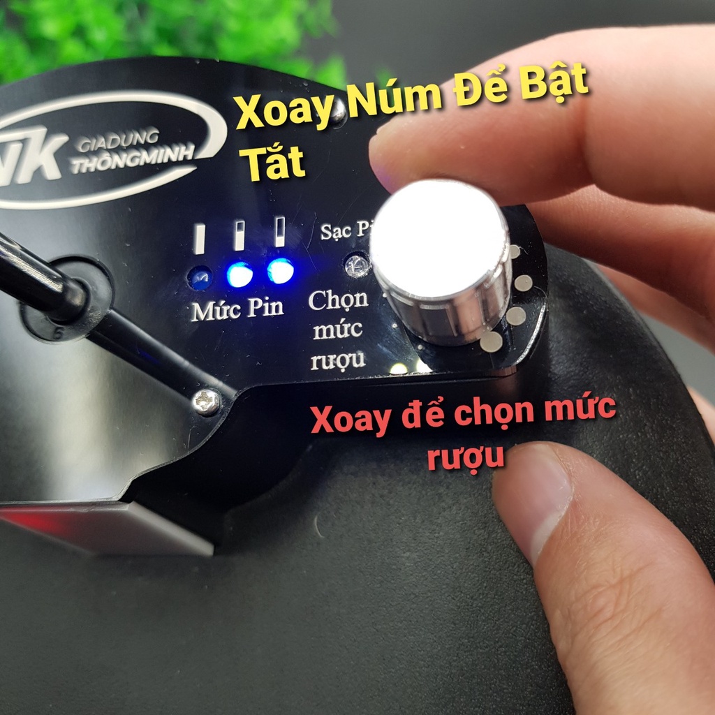03. Xoay núm Bật công tắc và chỉnh mức rượu trên công tắc