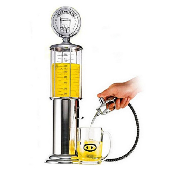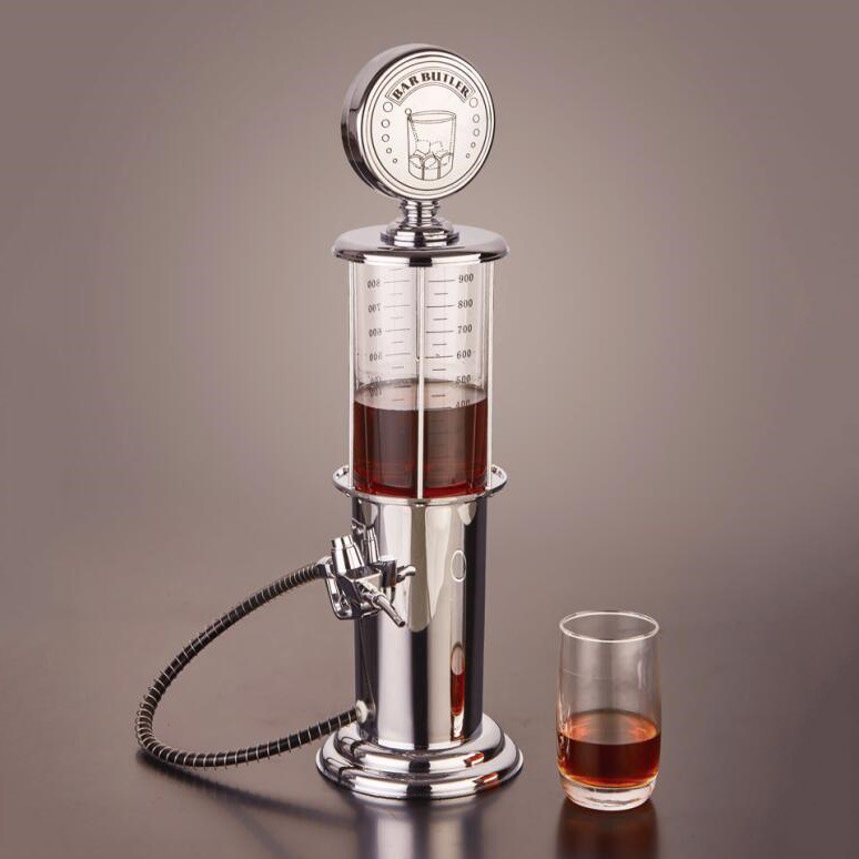 - Bình rót độc đáo này có thiết kế giống như một cây bơm xăng tự động. Bạn có thể sử dụng bình rót rượu cây xăng 1 vòi này để chứa rượu, bia, các loại cocktail mạnh hoặc nước hoa quả nguyên chất để uống. Như một đồ vật trang trí thật đẹp trong phòng khách, chiếc bình rót đặc biệt sẽ khiến khách khứa và bạn bè của bạn thật ngạc nhiên về bữa tiệc nhẹ tất niên hay liên hoan.