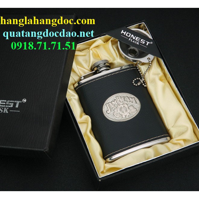 Bình rượu bỏ túi 4oz Honest bằng inox 304, bọc da logo Jam B.eam
