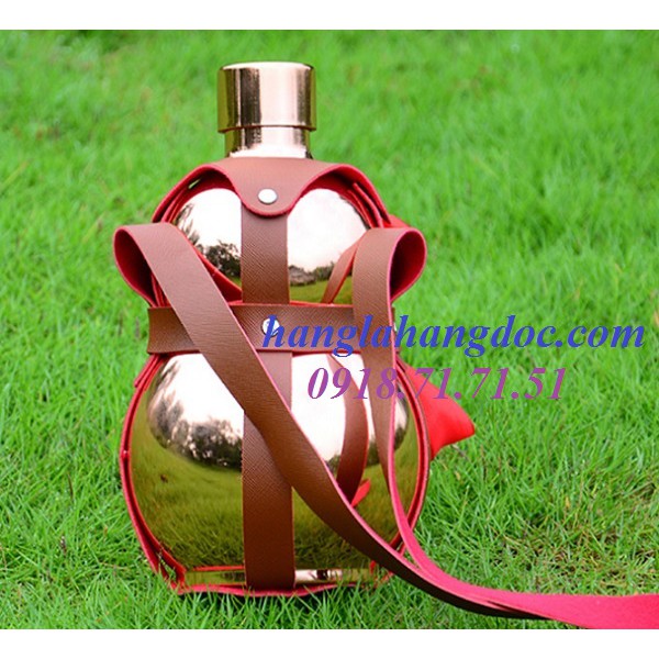 Giới thiệu Bình rượu hồ lô 2 lít, bằng inox mạ đồng, bao da xách tay siêu cá tính & độc đáo