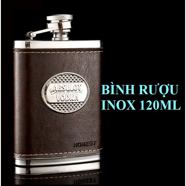 Bình rượu inox Honest 4oz bọc da, logo Vodka 120ml, bỏ túi tiện dụng & sang trọng