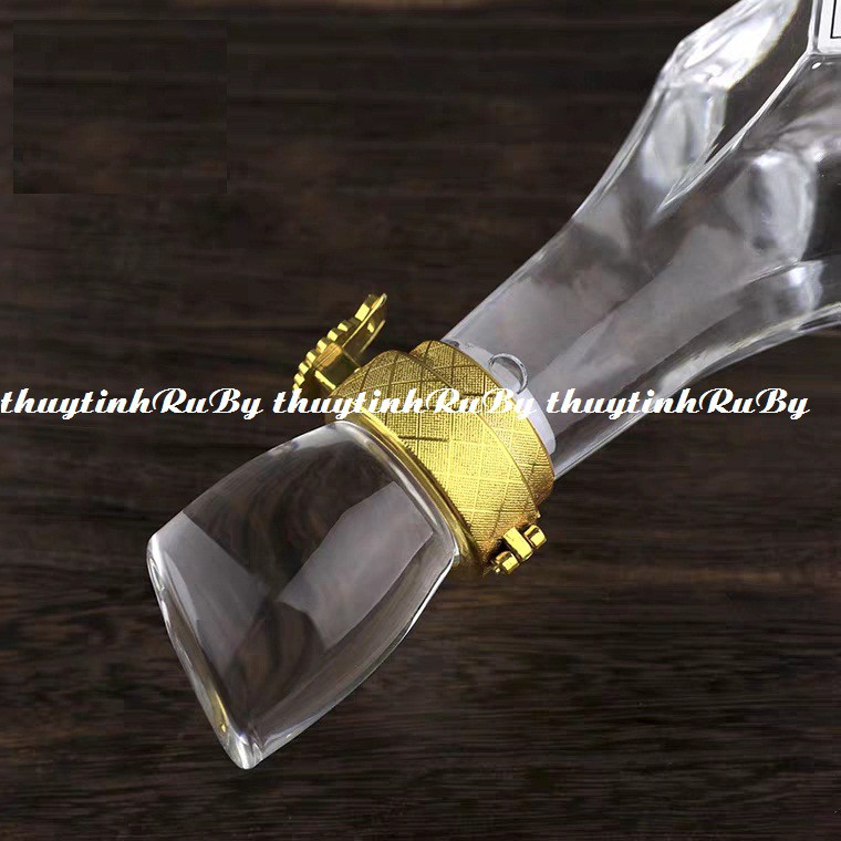 Chai Thủy Tinh Đựng Rươu 500ml sử dụng nắp thủy tinh nguyên khối đặc và nút cao su rất chặt, giúp cho rưou không bị rò rỉ, đai vàng giúp tăng vẻ sang trọng của chai, Ngoài ra chai thủy tinh đựng rượu còn được thiết kế bộ cài để khóa nắp lại tạo thêm vẻ sang trọng cho chai rươu.