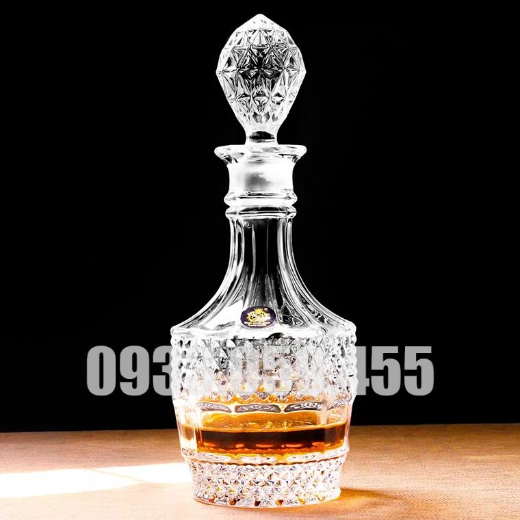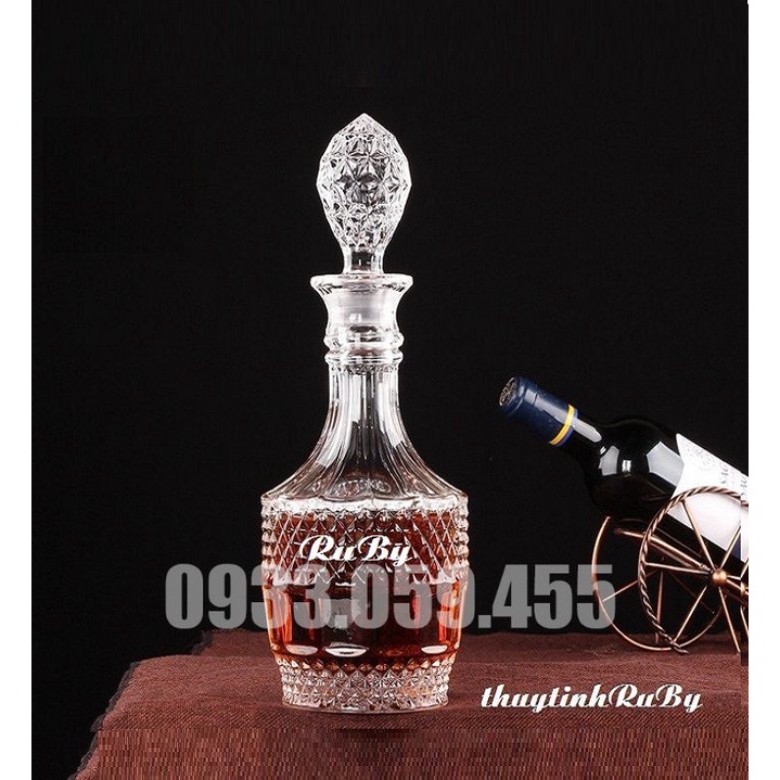 Bình Rươu Sâm Kim Cương Pha Lê 1000ML Vỏ chai đựng rượu kiểu đẹp. Vỏ chai xoĐường kính đáy: 13.5 cm