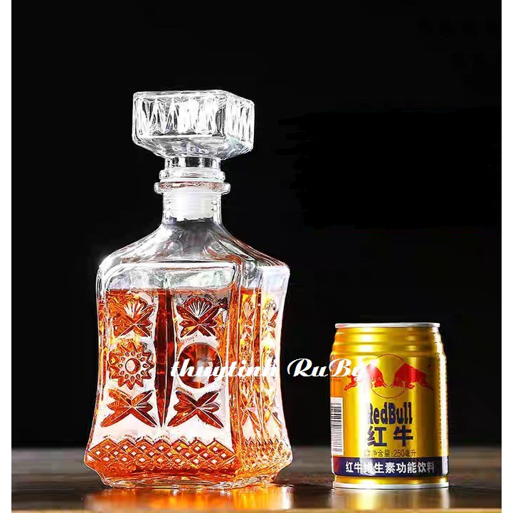 • Bình đựng rươu ngâm sâm kiểu dáng tinh tế hình thoi thẳng đứng, khắc hoa văn kim cương, có nắp vặn thủy tinh hình khối họa tiết kim cương trong suốt rất sang trọng.