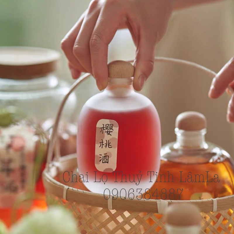 Giới thiệu Bình Rượuu Thuỷ Tinh Tròn Nhám Mờ Nắp Gỗ Cao Cấp 100ML 250ML 500ML