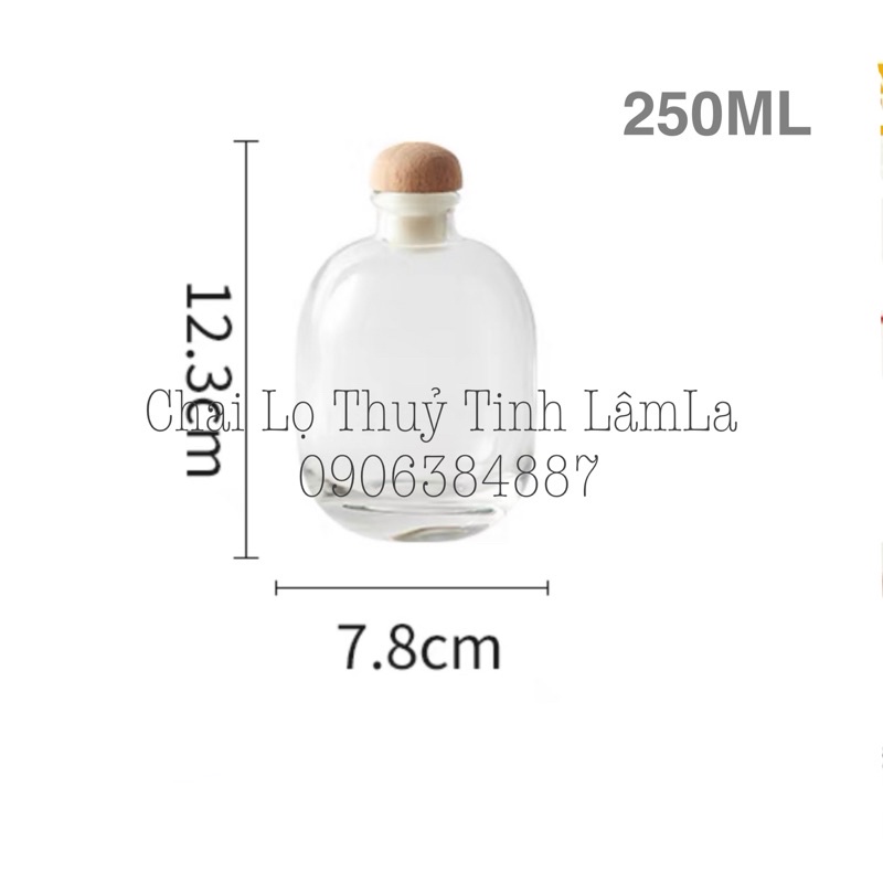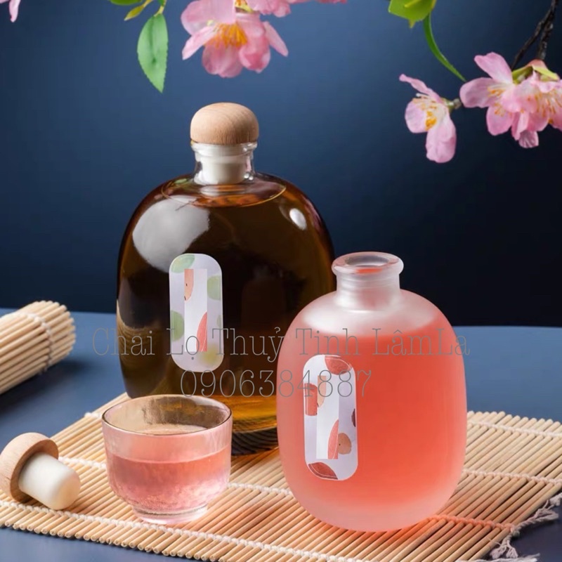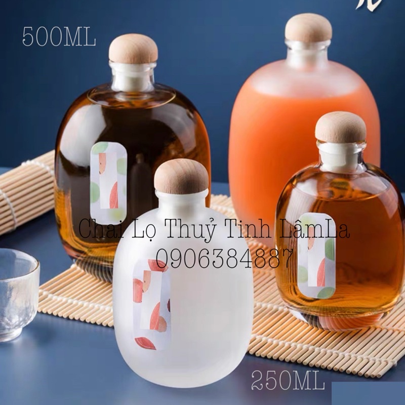Bình Rượuu Thuỷ Tinh Tròn Nhám Mờ Nắp Gỗ Cao Cấp 100ML 250ML 500ML