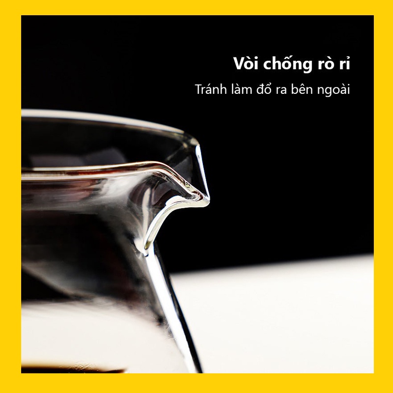 Bình được làm từ thủy tinh dày, chống nổ và nứt. Thủy tinh có độ trong suốt cao, chịu nhiệt cao đến 120℃, giữ nhiệt và chịu nhiệt ổn định trong quá trình pha chế mà không ảnh hưởng đến hương vị cà phê.