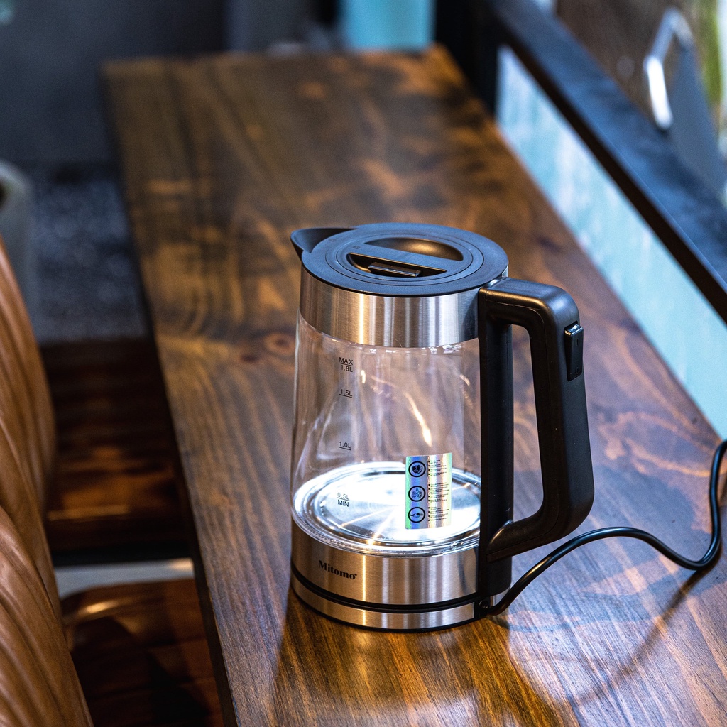 Bình siêu tốc, ấm đun siêu tốc thủy tinh cao cấp Mitomo ST-220 1.8L công suất 1800W - HÀNG CHÍNH HÃNG