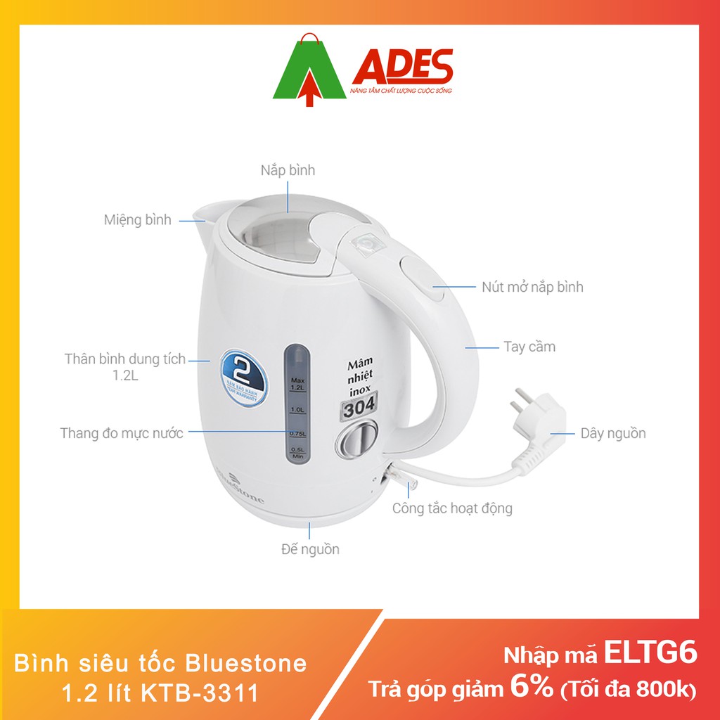 Thiết Bị Điện Gia Dụng > Đồ gia dụng nhà bếp > Ấm đun siêu tốc || [Mã 44ELSALE2 giảm 7% đơn 300K] Bình siêu tốc Bluestone 1.2 lít KTB-3311Còn hàng