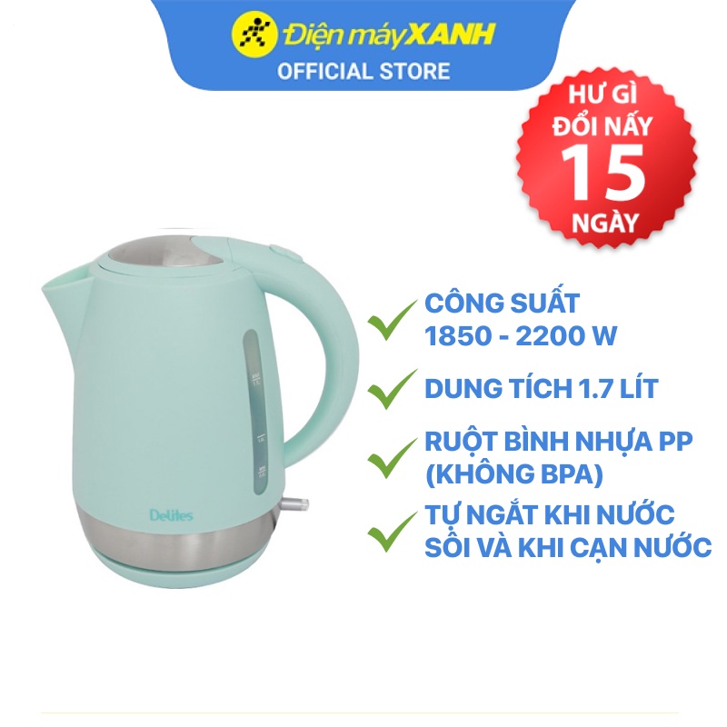 Thiết Bị Điện Gia Dụng > Đồ gia dụng nhà bếp > Ấm đun siêu tốc || [Mã ELHADEV giảm 4% đơn 300K] Bình siêu tốc Delites 1.7 lít ST17P03 XanhCòn hàng
