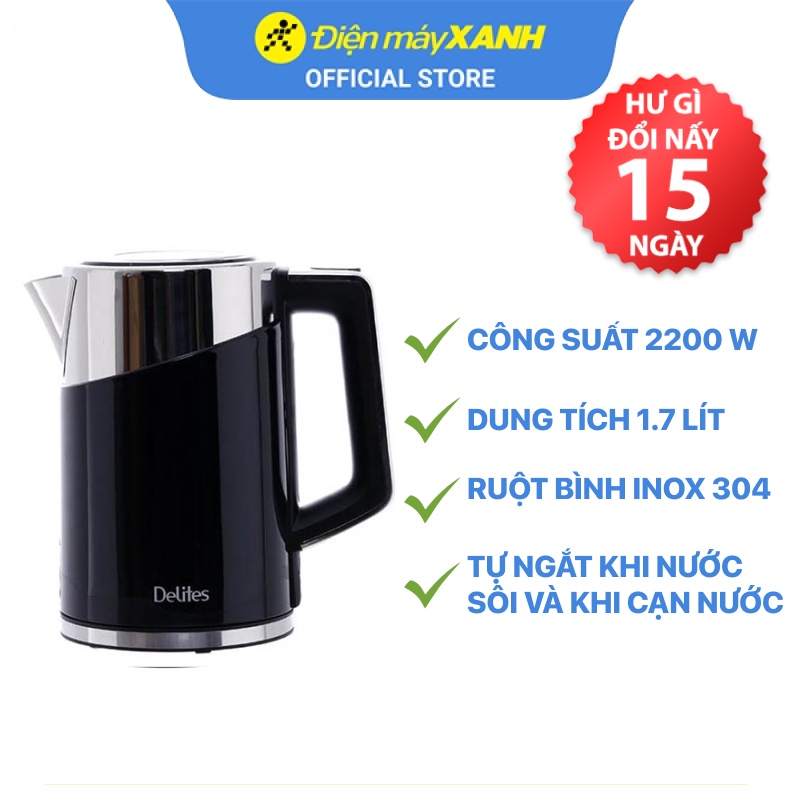 Bình đun siêu tốc Delites ST17DB01 có thiết kế đẹp mắt, sử dụng tiện lợi, đun nước nhanh sôi, giá cả tốt.