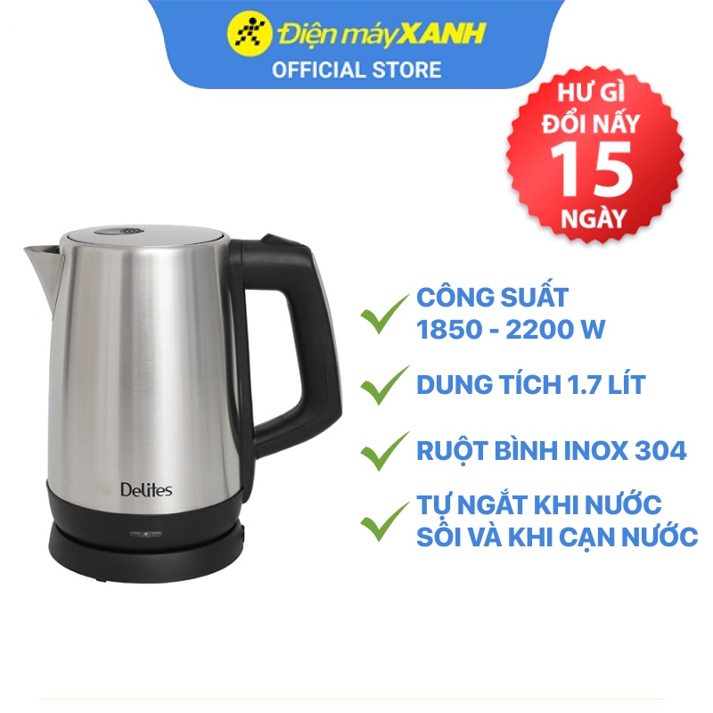 Thiết Bị Điện Gia Dụng > Đồ gia dụng nhà bếp > Ấm đun siêu tốc || Bình siêu tốc Delites 1.7 lít ST17S03Còn hàng