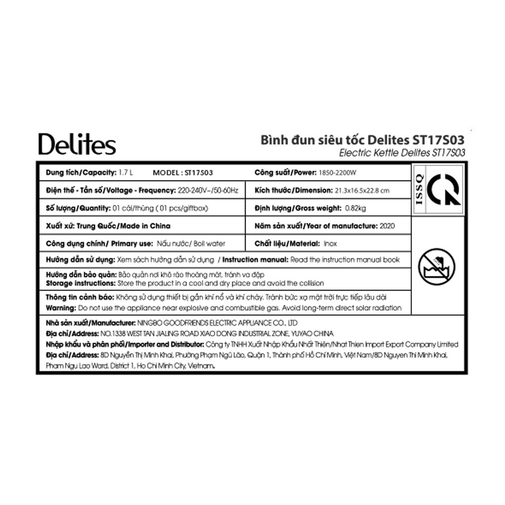 Thương hiệu: Delites | Xem thêm các sản phẩm Bình đun siêu tốc của DelitesMô tả ngắn