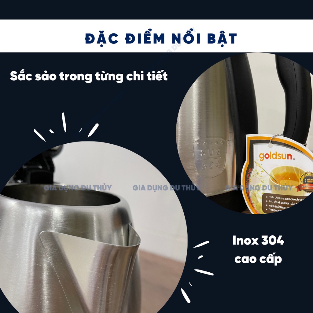 Bình siêu tốc inox 304 Goldsun dung tích 1.8L model GKT2605, nấu nước sôi nhanh trong tích tắc của gia dụng Du Thủy
