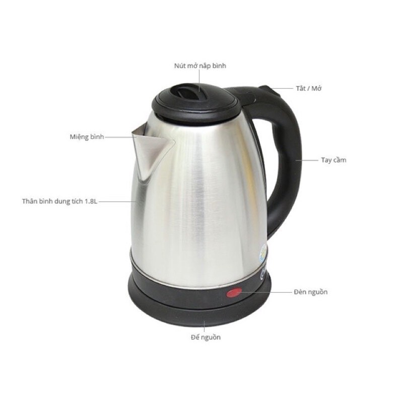 ✔Ấm đun siêu tốc được làm bằng chất liệu inox sáng bóng, không độc hại.